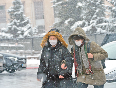 土耳其多地近日遭遇连续强降雪,多条高速公路封闭,大量航班被迫取消,部分地区供电中断。至少1人因大雪造成的交通事故死亡,另有38人受伤。图为1月24日,在首都安卡拉,人们在雪中出行。