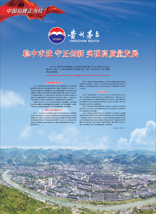 2022年,贵州茅台将按照“明确目标、精心策划、力求极致”工作思路,聚焦茅台文化“九大系列”,全方位挖掘、提炼、建设、丰富茅台文化,切实把茅台的文化势能转化为发展效能。