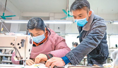 广西环江毛南族自治县一处帮扶车间,员工正在缝纫。 |
