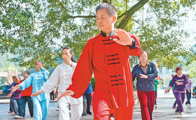 广西东兰县一处广场内,群众正在晨练。 |