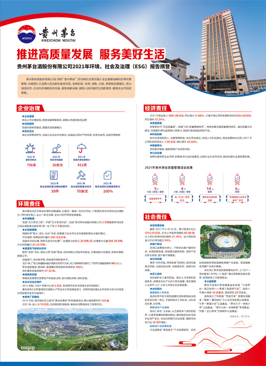 贵州茅台酒股份有限公司(简称“贵州茅台”)主动将社会责任融入企业发展战略和日常经营管理,长期践行大品牌大担当的社会责任观,坚持创新、协调、绿色、开放、共享新发展理念,努力创造经济、社会和环境的综合价值,服务国家战略、服务人民对美好生活的需求、服务企业可持续发展。