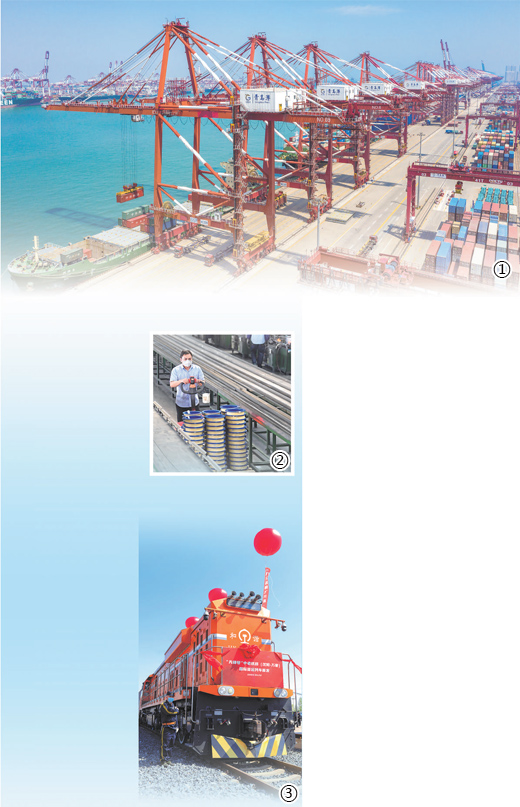 图①:山东港口青岛港前湾集装箱码头一派繁忙景象。 |