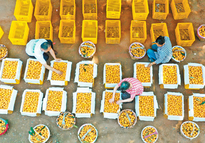 近年来,四川省仁寿县发展枇杷等农业特色产业,确保技术服务到位、销售渠道通畅,不断提升产业规模和品质,带动当地农户持续增收致富。图为在仁寿县文宫镇石家社区,果农正在分拣枇杷。