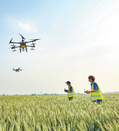 5月6日,河北省邢台市平乡县,植保服务队队员正在使用无人机为麦田进行“一喷三防”作业,实现农药减量、小麦增产增收目标。 |