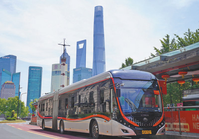 5月22日,一辆71路公交车停靠在上海延安东路外滩站。当日,上海跨区公共交通启动恢复,4条轨道交通线路和273条公交线路开始运营。优先恢复的公交线路主要服务于机场、火车站、三甲医院和各区中心医院。