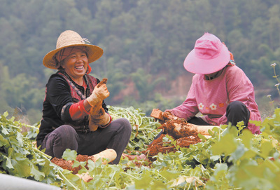 云南省玉溪市新平彝族傣族自治县,农民在地里收获蔬菜。 |