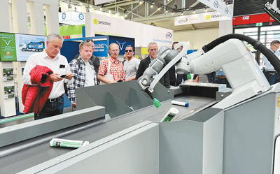 在慕尼黑环博会上,一家德国垃圾回收设备公司推出的全自动机器人分拣系统,可以自动识别数十种不同材质的垃圾。 |