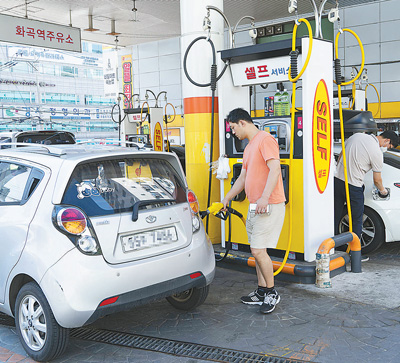 韩国现阶段石油产品价格大幅上涨。近期,韩国平均每升柴油价格超过2000韩元(约合10.6元人民币),每升汽油均价为1995韩元(约合10.57元人民币)。图为日前,市民在韩国首尔一家自助式加油站加油。