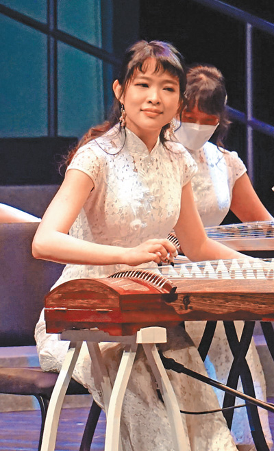全港同乡社团庆祝香港回归祖国25周年文艺巡演启动礼上,表演者在演奏古筝。 |