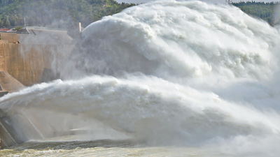 图为29日,黄河小浪底水库出水口。据介绍,2022年汛前黄河调水调沙于19日启动,预计历时20天左右。 |
