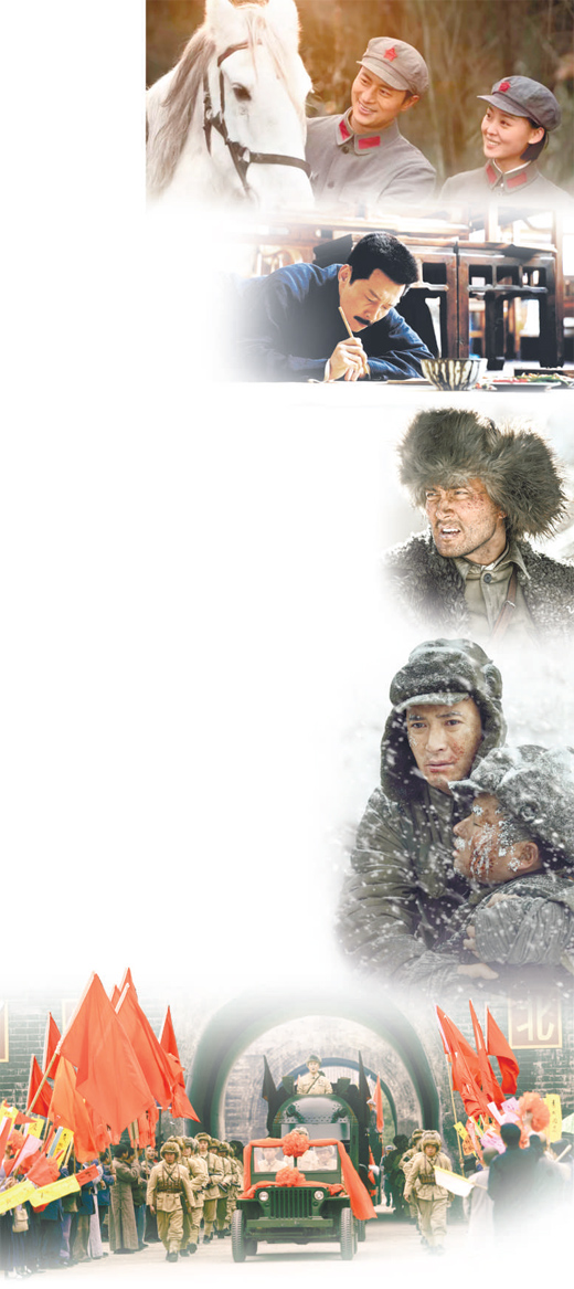 图片自上而下分别为电视剧《可爱的中国》《觉醒年代》《光荣与梦想》《跨过鸭绿江》《百炼成钢》剧照。 |