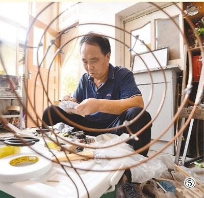 图⑥:王跃增在为孩子们讲解自制教具使用方法。 |