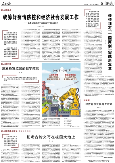 统筹好疫情防控和经济社会发展工作(人民观点)