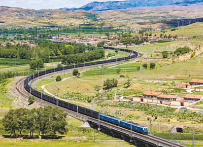 7月17日,煤炭列车行驶在唐包(唐山—包头)铁路上。