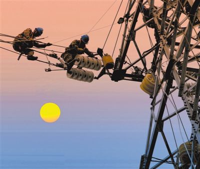国网江西省萍乡市上栗县供电公司施工人员在杨岐乡黄冲村10千伏关城线铁塔之间进行高空放线作业。 |