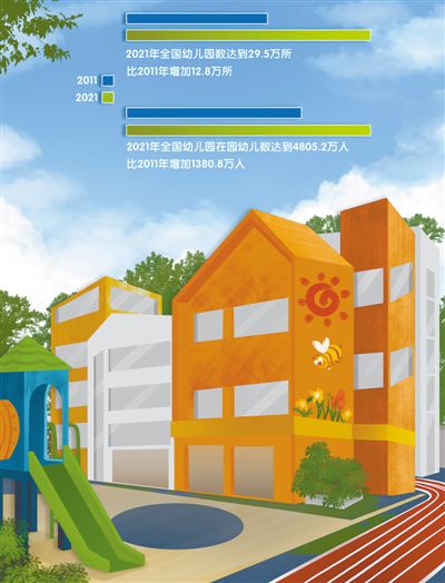 党的十八大以来,党中央、国务院高度重视学前教育,连续实施行动计划,推动学前教育取得跨越式发展,学前教育资源结构发生格局性变化,教师队伍不断加强。2021年全国幼儿园数达到29.5万所,全国学前三年毛入园率提高到88.1%,学前教育实现了基本普及。