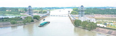 淮河入海水道与京杭大运河相交,组成“水上立交桥”。 |