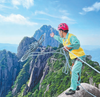 放绳工是景区环卫里的一个特殊工种,需要在悬崖峭壁上捡拾垃圾和塑料袋……这项工作既辛苦又危险,胆识、技术、体能,缺一不可。