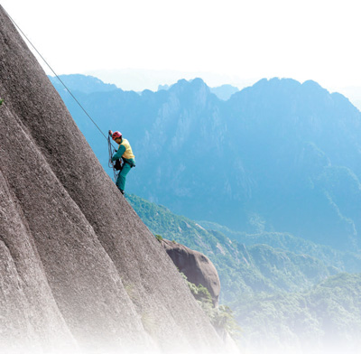 经过刻苦专业训练和长期实地操作,如今的李培生对这个工作已是驾轻就熟。凭借一根绳索,他在悬崖峭壁间行走自如。