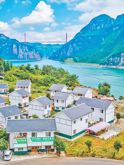 党的十八大以来,党领导人民打赢脱贫攻坚战,历史性地解决了绝对贫困问题。贵州省黔西市新仁苗族乡化屋村于2017年脱贫,2021年人均年收入提升至近2万元。图为干净整洁的化屋村麻窝寨易地扶贫搬迁集中安置点。 |
