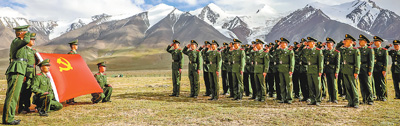 “七一”前夕,驻守在平均海拔4500米高原的武警青海总队执勤支队执勤二大队开展“重温入党誓词,牢记初心使命”主题党日活动。官兵们表示,时刻牢记党在新时代的强军目标,永远做党和人民的忠诚卫士。图为执勤二大队官兵在昆仑山玉珠峰下重温入党誓词。 |