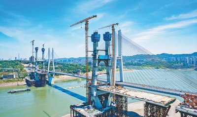 8月14日,重庆市李家沱长江复线桥项目施工现场,工人们战高温、抢工期,有序推动项目建设进度。李家沱长江复线桥为重庆轨道交通18号线的控制性工程,全长1306米,主桥长991米。