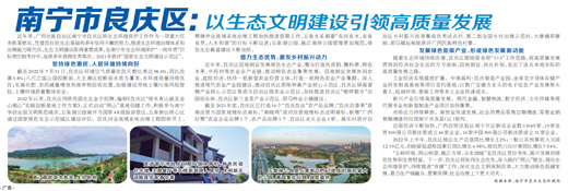 “五岭环抱、两山相望、邕江为脊、众水润城”是良庆区晋位争先、振兴发展的绿色优势和宝贵财富。下一步,良庆区将坚持生态优先,深入践行“两山”理念,强化生态环境保护,持续推进“双碳”工作,深化生态文明体制改革,大力推动绿色低碳发展,着力在产城融合、要素保障、社会治理上下更大功夫。