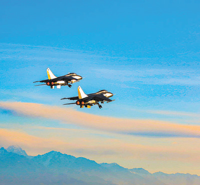 西部战区空军航空兵某旅组织飞行训练,双机加力起飞,飞向目标空域。 |