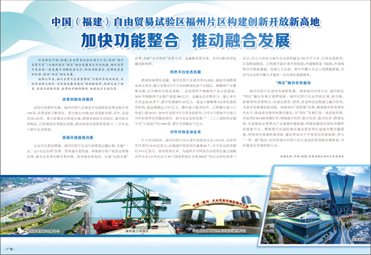 时逢推进中国(福建)自由贸易试验区福州片区(简称“福州自贸片区”)与福州新区“两区”融合发展重大历史机遇,福州自贸片区在新一轮发展中清晰找准定位,加快功能整合,发挥政策叠加优势,推动“两区”融合发展。
