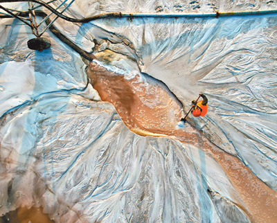 金秋时节,江苏连云港市原盐喜获丰收,工人们抓住晴好天气,加紧收获原盐。近年来,连云港市强化盐业生产技术创新,加快新型盐池建设步伐,构建现代化原料盐、工业盐两大原盐生产基地框架,推进盐业生产基础升级、降本增效,不断提升原盐产能。