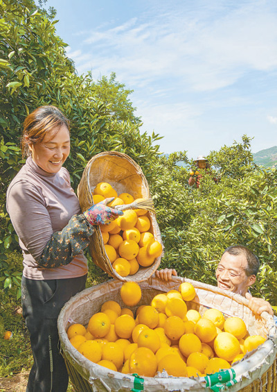 加快促进农民增收,让广大农民都过上幸福美满的好日子。图为2022年4月,湖北省秭归县水田坝乡下坝村村民将刚收获的脐橙装筐。 |