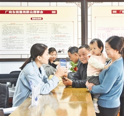 河北省邯郸市永年区加强党群服务中心建设,深入实施综合服务站提升工程。图为永年区广府镇综合服务站工作人员(左一)在帮助群众办理业务。 |