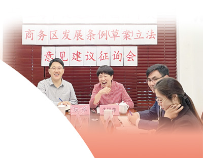 上海市长宁区虹桥街道是全国人大常委会法工委设立的首批基层立法联系点之一,当地群众在家门口就可以参加立法意见征询。图为在虹桥街道,全国人大代表朱国萍(左二)向群众征询意见建议。 |