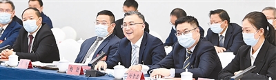 10月17日,重庆代表团举行全体会议,重庆市司法局机关党委副书记杨懿代表(前排右三)就基层法治建设发言。