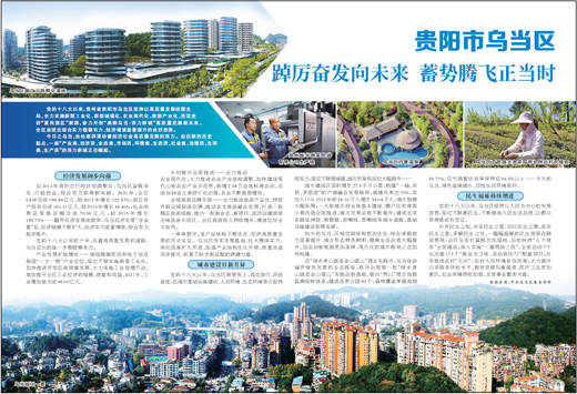 党的十八大以来,贵州省贵阳市乌当区坚持以高质量发展统揽全局,全力实施新型工业化、新型城镇化、农业现代化、旅游产业化,坚定走好“富民强区”新路,奋力开创“美丽乌当·活力新城”高质量发展新未来。全区呈现出综合实力稳健有力、经济增速显著提升的良好态势。