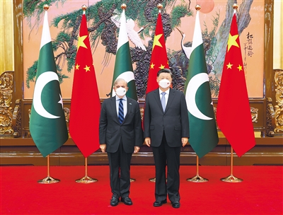 习近平介绍了中国共产党第二十次全国代表大会取得的重要成果。习近平指出,中国将继续坚持对外开放基本国策,不断以中国新发展为包括巴基斯坦在内的世界各国提供新机遇。中方愿同巴方深化发展战略对接。双方要用好中巴经济走廊联合合作委员会机制,以更高效率推进中巴经济走廊建设,将其打造成“一带一路”高质量发展示范性工程。要加快推进瓜达尔港配套基础设施建设,发挥港口对地区联通发展的辐射带动作用。双方要共同努力,为早日实施一号铁路干线升级改造项目和卡拉奇环城铁路项目创造条件。中方欢迎巴基斯坦扩大优质农产品对华出口,愿同巴方拓展数字经济、电子商务、光伏等新能源合作,扎实推进农业、科技、民生等领域合作,将继续为巴方稳定金融形势提供力所能及的支持。中方支持中国工业强省同巴方结对子推进产业合作,希望巴方提供良好营商环境。我高度牵挂在巴中国人的安全问题,希望巴方为赴巴基斯坦开展合作的中国机构和人员提供可靠安全环境。