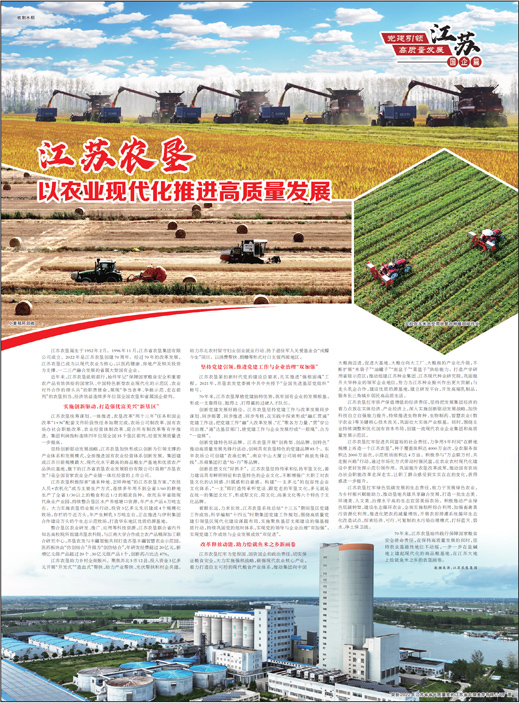 近年来,江苏农垦砥砺前行,始终牢记“保障国家粮食安全和重要农产品有效供给的国家队、中国特色新型农业现代化的示范区、农业对外合作的排头兵”的职责使命,展现“争当表率、争做示范、走在前列”的农垦担当,经济效益连续多年位居全国农垦和省属国企前列。