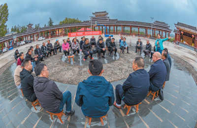 在贵州省黔东南苗族侗族自治州锦屏县新化乡新化寨村文化广场,县政协委员、乡政府党员干部、村两委成员及村民代表围坐一起,开起“院坝协商会”,就村里的“空地治理”进行协商讨论。