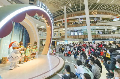 1月2日,在北京荟聚中心主中庭演出的原创童话剧吸引众多市民观看。元旦假期,北京各商场人流回升,节日氛围浓厚。 |