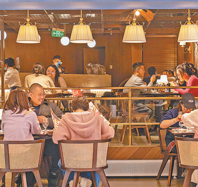 1月1日,顾客在北京银泰中心商场餐厅就餐。据介绍,目前该商场客流已恢复至正常流量的八成。 |