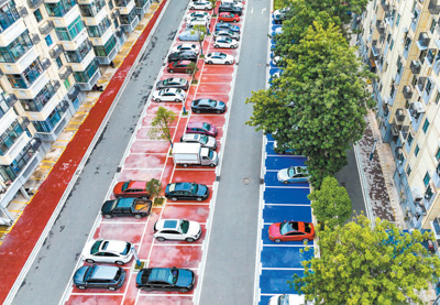 在江西省赣州市章贡区南外街道南外社区气压机厂宿舍二区,改造后的地面停车位整齐划一。 |