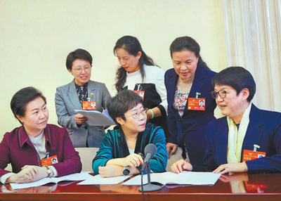 3月6日,全国政协妇联界别委员讨论政府工作报告。 |