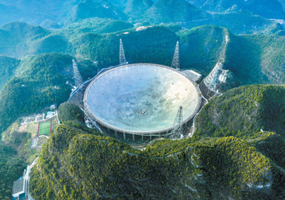 坐落于贵州省平塘县的“中国天眼”射电望远镜。 |