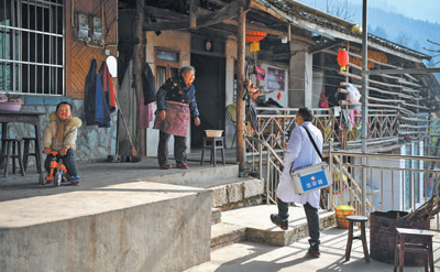 四川省北川羌族自治县曲山镇石椅村,村医入户走访重点人群,提供医疗服务。 |