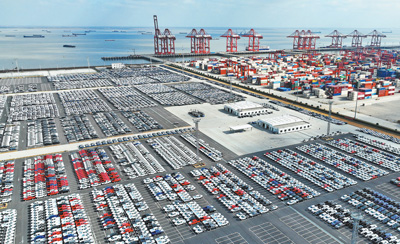 江苏省太仓港外贸汽车堆场,一批即将出口的汽车整装待发。 |