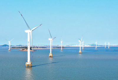 福建省福清市,兴化湾海上风电场一角。 |