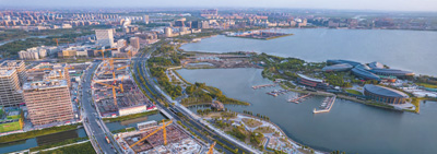 上海自贸试验区临港新片区滴水湖畔,塔吊林立,多个重点项目建设如雨后春笋般拔地而起。 |