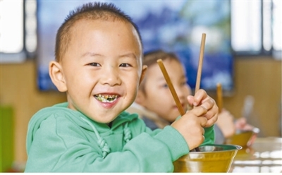 贵州省铜仁市玉屏侗族自治县十分重视幼儿园营养早餐建设,制定科学的食谱,确保幼儿吃饱吃好。图为幼儿在吃营养早餐。
