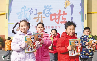 安徽省合肥市蜀山区北苑村社区琥珀小学(东区),孩子们在校园里迎接新学期的到来。