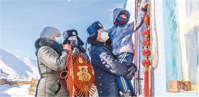在新疆维吾尔自治区,阿勒泰边境管理支队富蕴大队吐尔洪边境派出所的民警和护边员到偏远山区困难群众家中探访。 |